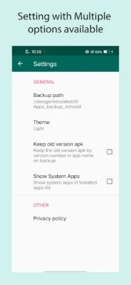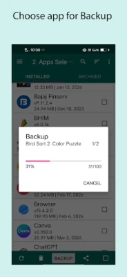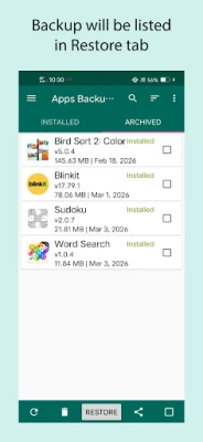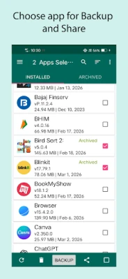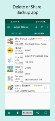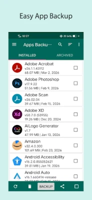 Kenyamanan adalah inti dari 'Apps Backup and Restore' dengan serangkaian fitur yang dirancang untuk mempermudah hidup Anda. Nikmati kemampuan pencadangan otomatis saat aplikasi baru terinstal, memastikan Anda tidak pernah melewatkan untuk mengamankan tambahan terbaru Anda. Aplikasi ini tidak hanya menangani aplikasi pihak ketiga, tetapi juga memungkinkan Anda mencadangkan aplikasi sistem yang seringkali penting. Dari dalam aplikasi, Anda dapat dengan cepat meluncurkan aplikasi yang sudah terinstal, atau bahkan menghapusnya jika tidak lagi diperlukan, menjaga perangkat Anda tetap rapi. Berbagi kebahagiaan aplikasi Anda juga mudah; kirim file APK ke teman atau bagikan tautan aplikasi langsung dari satu tempat. Ditambah lagi, dengan sentuhan panjang pada daftar aplikasi, Anda akan menemukan opsi tambahan yang memudahkan pengelolaan.