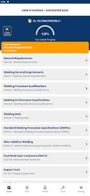 Presisi adalah kunci, dan ASME-IX Welding menghadirkan sejumlah alat bantu cerdas untuk menyederhanakan perhitungan input panas dan kesetaraan karbon, memastikan hasil yang akurat. Uji kemampuan Anda dan bangun kepercayaan diri di bagian "Challenge Yourself" dalam Knowledge Base, mode yang sempurna untuk penilaian diri dan penyempurnaan keterampilan. Dirancang dengan antarmuka yang intuitif dan mudah digunakan, pengalaman belajar Anda akan terasa mulus dan efisien. Pelajari kapan pun, di mana pun—baik melalui smartphone atau tablet—sesuai kecepatan Anda sendiri, menjadikan ASME-IX Welding solusi fleksibel untuk pertumbuhan profesional Anda.