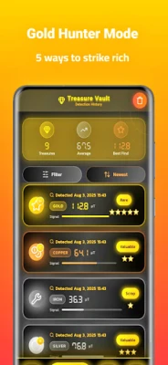 Visualisasikan setiap sinyal dengan presisi melalui grafik langsung dan pengukuran numerik yang akurat, dengan dukungan konversi unit μT/mG untuk data yang lebih mendalam. Sistem deteksi cerdas Aplikasi Detektor Logam bereaksi terhadap jarak dan jenis logam, memperkuat penemuan Anda dengan peringatan audio dan getaran yang responsif, memastikan tidak ada sinyal yang terlewat. Lebih dari sekadar perburuan harta karun, aplikasi ini adalah alat praktis yang serbaguna: temukan pipa di dinding, kumpulkan sekrup yang jatuh, atau identifikasi logam di lokasi konstruksi. Setiap penemuan berharga dapat Anda simpan dengan mudah, membangun riwayat deteksi pribadi dan memetakan "harta karun" Anda sendiri.