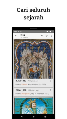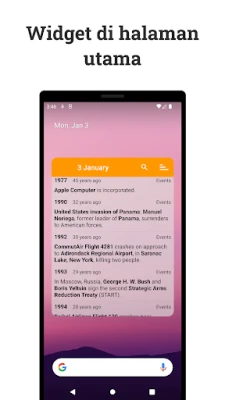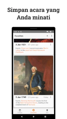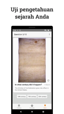 Dengan Kalender Sejarah, menjelajahi kronik dunia menjadi interaktif dan personal. Selami "Linimasa" harian yang disajikan secara visual, dilengkapi dengan filter cerdas untuk menyaring berdasarkan orang, lokasi, atau periode historis tertentu. Dapatkan wawasan cepat tentang "Hari Ini dalam Sejarah" melalui widget layar utama yang praktis. Uji pemahaman Anda dengan "Kuis" yang dirancang khusus untuk memperkaya pengetahuan sejarah Anda. Simpan dan atur temuan paling menarik di bagian "Favorit", bahkan tambahkan catatan Anda sendiri untuk koleksi yang unik. Selain itu, Anda bisa memperdalam wawasan dengan "Artikel Asli" eksklusif dan mengakses "Bacaan Lebih Lanjut" melalui tautan langsung ke artikel Wikipedia yang mendalam.