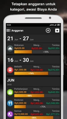 Lebih dari sekadar pencatat, aplikasi ini memberdayakan Anda dengan fitur perencanaan anggaran yang kuat. Tetapkan batasan pengeluaran harian, mingguan, bulanan, atau tahunan untuk berbagai kategori, lalu bandingkan kinerja finansial Anda dari waktu ke waktu untuk pertumbuhan yang berkelanjutan. Kustomisasi adalah kunci; selain kategori bawaan yang lengkap, Anda bebas membuat dan mengedit kategori sesuai gaya hidup Anda, bahkan memilih simbol grafis unik untuk identifikasi visual yang cepat. Jangan lewatkan lagi tenggat pembayaran penting berkat pengingat tagihan otomatis, yang akan menempatkan alarm di kalender dan mengirimkan notifikasi proaktif, bahkan saat aplikasi tidak aktif. Kemudahan juga datang dengan penjadwalan transaksi berulang, menghilangkan kebutuhan untuk memasukkan detail yang sama berkali-kali.