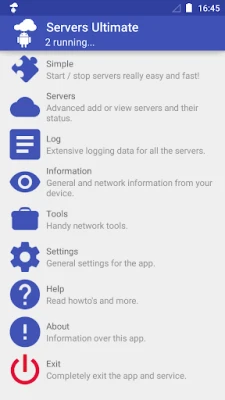 Rasakan kemudahan mengelola infrastruktur jaringan Anda langsung dari perangkat seluler. Aplikasi inovatif ini memungkinkan Anda untuk dengan cepat memulai server menggunakan mode 'Sederhana' atau mendalami konfigurasi canggih dengan menambahkan pengguna, membatasi akses IP, dan lainnya. Jalankan beberapa server secara bersamaan tanpa perlu khawatir, bahkan banyak fungsi utama dapat diakses tanpa memerlukan akses root khusus, memberikan fleksibilitas luar biasa bagi para profesional maupun penggemar teknologi.